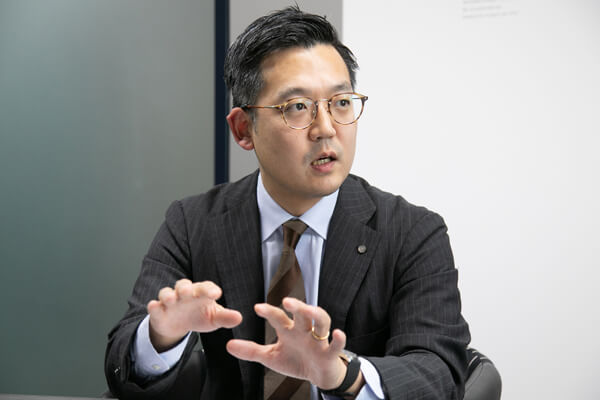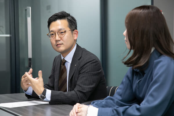 - 国内企画業務グループの仕事は、国内事業部全体の潤滑油のような仕事ですね。事業の方針策定や販促施策のとりまとめから他部署との調整など明確な業務範疇はなく、国内商品に関わること全てが対象です。調整や運用整理など華やかな部署ではないですが、国内事業を推進していくためであればなんでもできる部署なので、受け身にならず積極的にできることを考えて行動するようにしています。