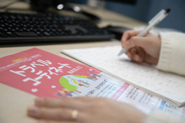例えば航空機の欠航に関するお問い合わせは状況により対応が異なるため、最新情報にアンテナを張り臨機応変に判断を変えていかなくてはなりません。また旅行先での予期せぬアクシデントを心配されるお客さまもおり、まずはしっかり話を聞いてみないと、誤った対応をしてしまう可能性もあります。こうした場面を何回も経験することで身につくスキルではありますが、先輩に質問をしたり、似たような事柄が起きたときに困惑しないよう、メモに記して定期的に見返しています。
