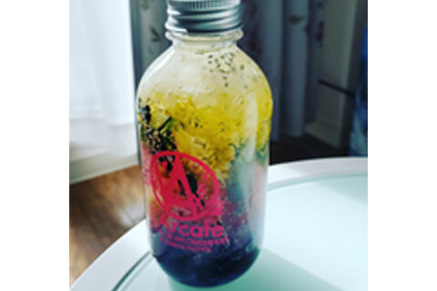 2021年9月、L’Arc~en~Cielのコラボカフェに行った際に持ち帰りしたドリンクボトルを活用して、ハーバリウムで残してみました。